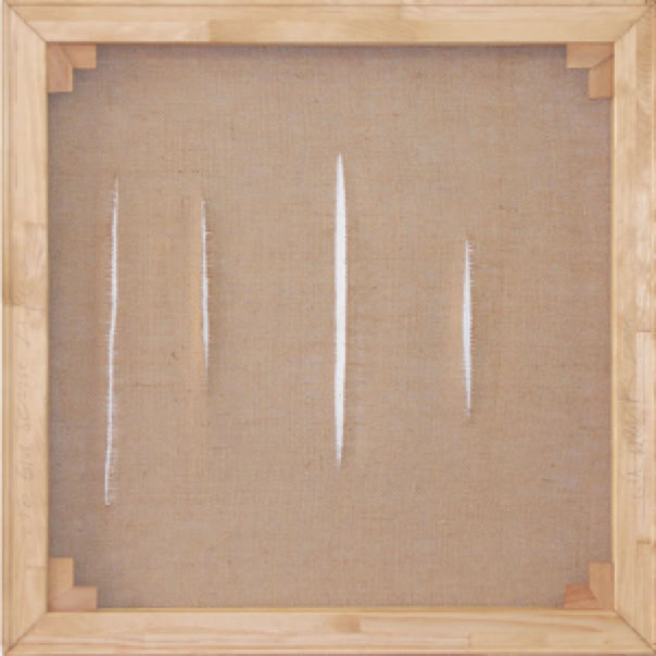 Abb. oben: MÄDCHEN IN ROTEM KLEID 200 x 200 x 5 cm, Acryl auf Jute auf Keilrahmen. Abb. unten: ACHTEINHALB ERHÖRTE VATERUNSER 8teilig, je 75 x 75 x 5 cm, Acryl auf Nessel auf Keilrahmen