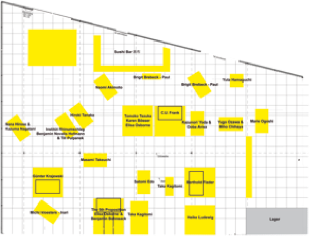 Mit Naomi Akimoto, Birgit Brebeck-Paul, Satomi Edo, Berthold Flader, C.U. Frank, Yuta Hamaguchi, Nana Hirose & Kazuma Nagatani, Institut Rheinumschlag: Benjamin Novalis Hofmann & Till Pulpanek, Michi Kloesters-Inari, Günter Krajewski,Taka Kagitomi, Heike Ludewig, Marie Ogoshi, Yugo Ozawa & Miho Chihaya, Leonid Sokhranski, , Masami Takeuchi, Hiroki Tanaka, Tomoko Tezuka & Karen Bösser, The 5th Proposition: Benjamin Bohnsack & Elisa Osborne, Kazunori Yoda & Ooba Arisa.