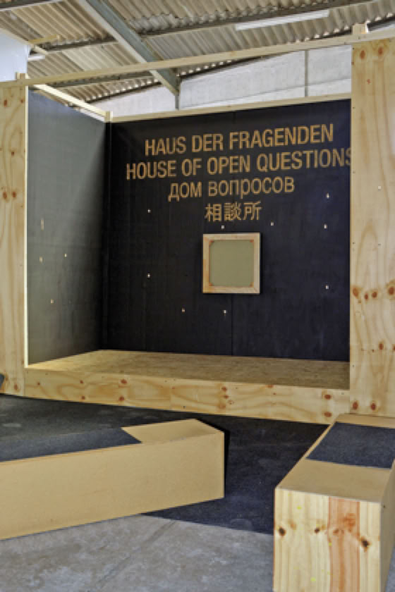 Ein Projekt von Hiroyuki Masuyama unter dem Aspekt der Nachbar- und Völkerverständigung mit japanischen, deutschen, amerikanischen und russischen Künstlern, die durch gegenseitige Hilfe im Aufbau der Häuser, alltägliche Lebensprozesse wie Kochen und gemeinsames Essen sowie durch Überwindung von Sprachen und Austausch unterschiedlichster Erfahrungen Grenzen zum Anderen überwinden wollen. Ausstellungshalle Werft 77, Reisholzer Werftstrasse 77, 40589 Düsseldorf www.kunst-im-hafen.de