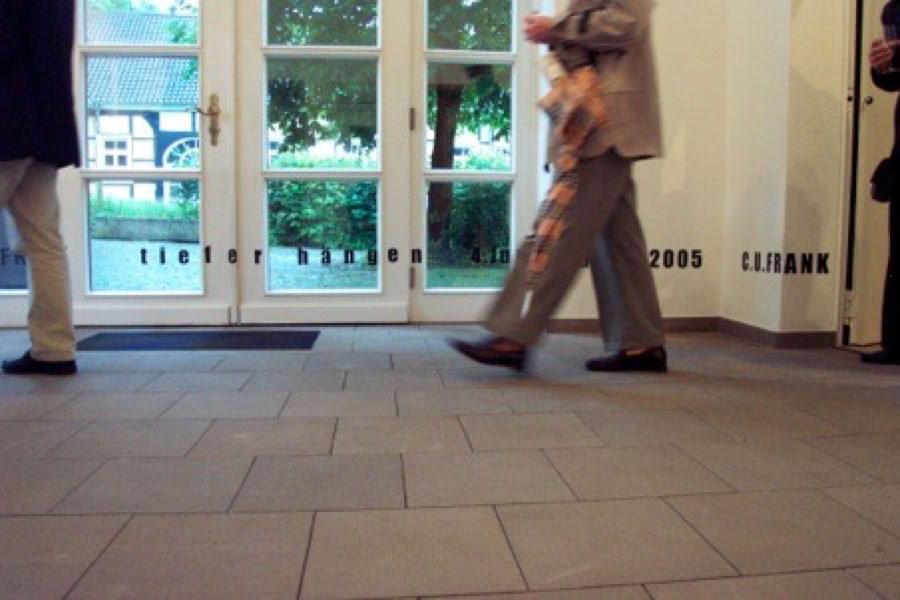 04.06. - 07.08. 05 Einzelausstellung, Einführung Dr. Hermann Ühlein, Vorburg Schloss Hardenberg, Zum Hardenberger Schloss 1, 42553 Velbert, Abb. ”Im Schatten des Chillida - Males“, 200 x 200 x 5 xm, Acryl auf Jute