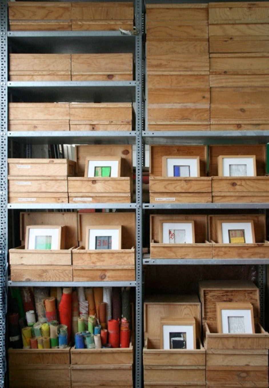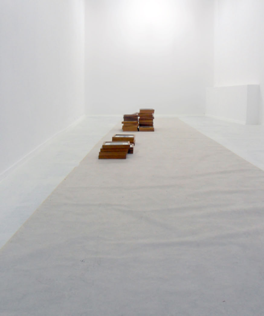 Pieces ATELIER AUFNAHME DÜSSELDORF 2001 - 2016 Jeweils 25 x 25 x 3 cm große Objektrahmen. Fragmente ehemals grossformatiger Arbeiten. Zerstört, zerstückelt, zerrissen, zerschnitten, auseinandergenommen, gefaltet, inein-