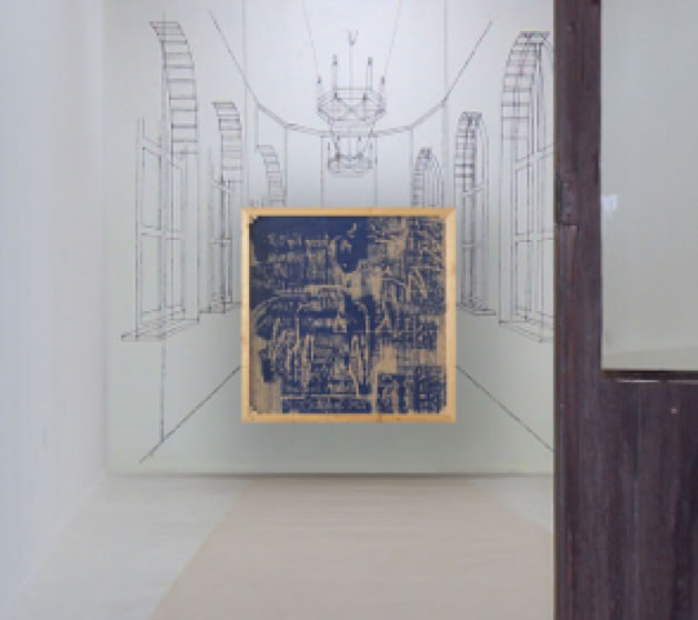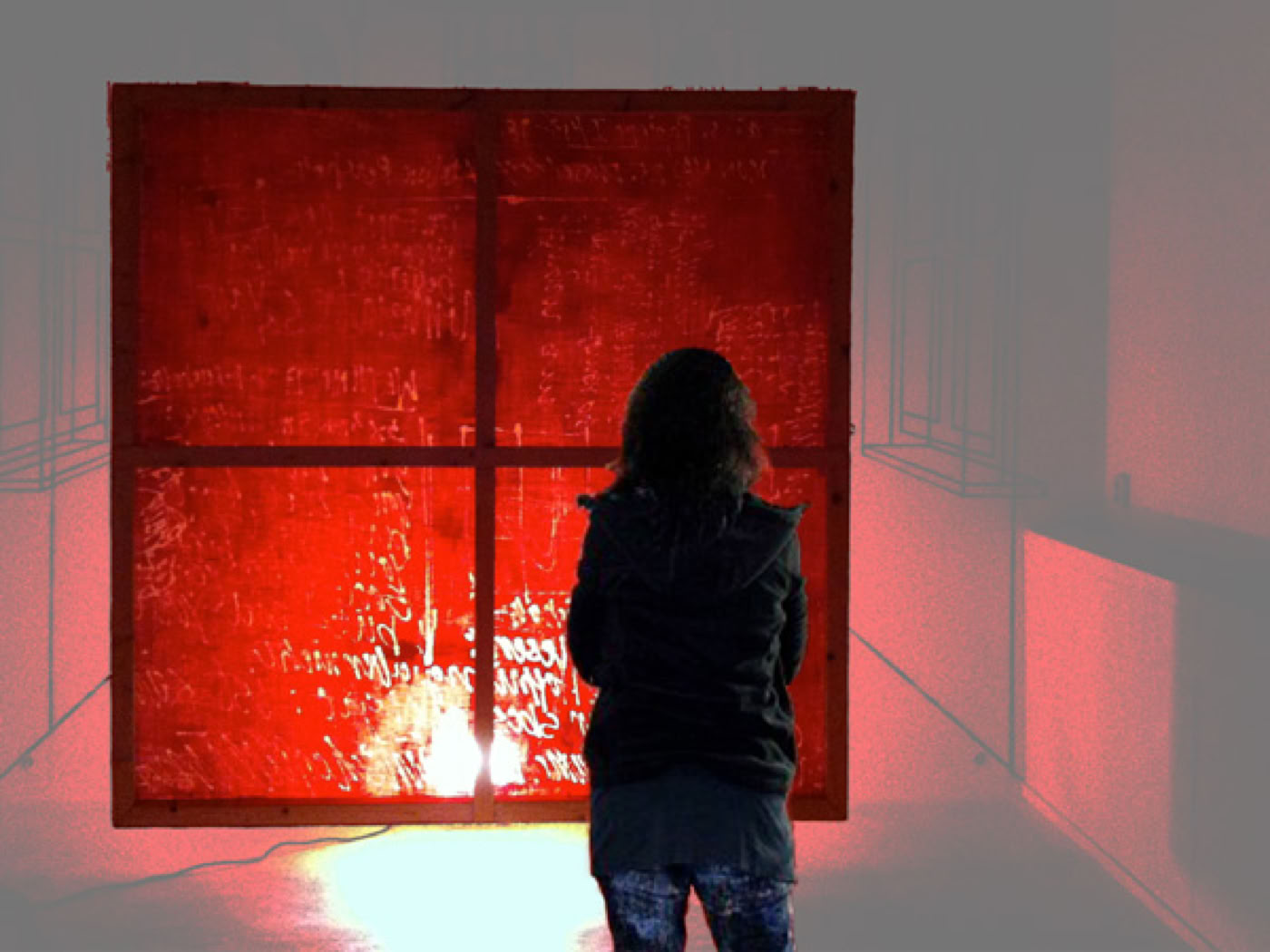 HAÛT / OBEN Atelier Düsseldorf 2017 Lichtinstallation 200 x 200 x 5 cm, Acryl auf Jute © C.U. Frank